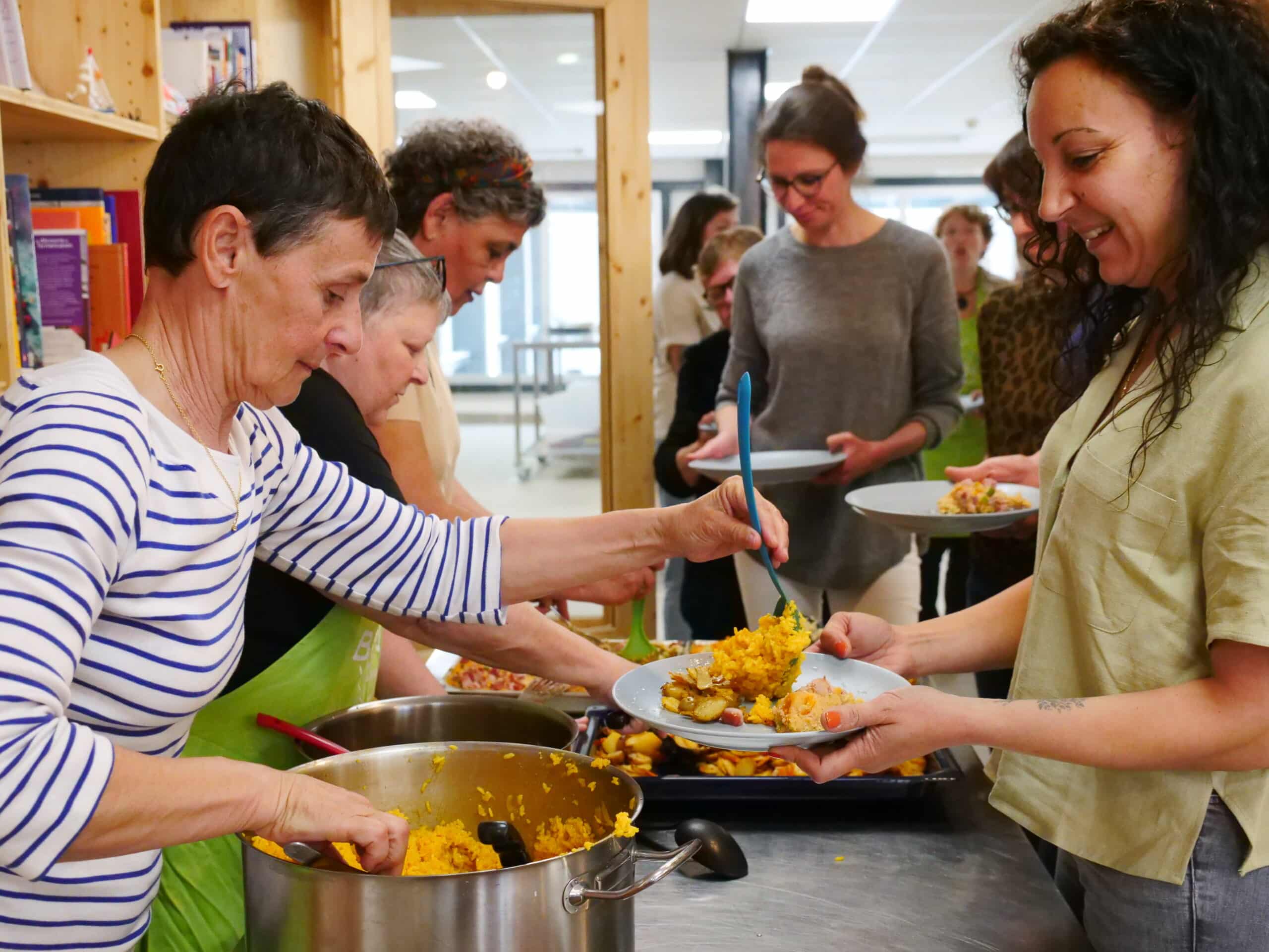 De la préfiguration à la mise en œuvre, nous accompagnons depuis 2017 le projet de Cuisine Commune de Chaud Bouillon à Fives Cail. Cet espace de cuisine partagé a été imaginé dans le cadre d’un projet de réhabilitation d’une ancienne friche industrielle en vue de favoriser le lien social, inclure les habitants dans la mutation de leur quartier, lutter contre la précarité alimentaire et accompagner à la transition.